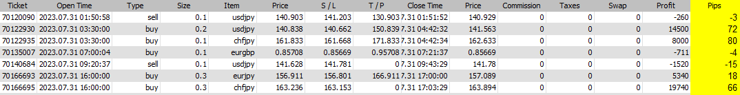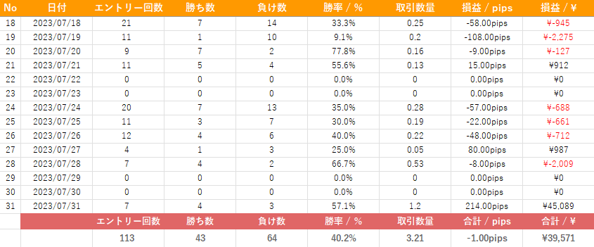 FXを始めて約10日、無知識から始めて負け越しではあるもののなんとなく理解はできてきています。日曜日に少し時間の余裕ができたため7月1日~の3通貨ペアにて検証を行いました。